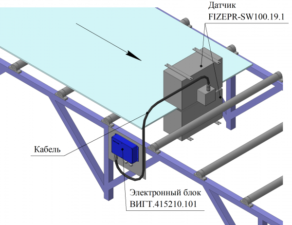 Разработан влагомер FIZEPR-SW100.19.1 для бесконтактного измерения влажности листов гипсокартона (ГКЛ), картона, плит ДВП, ДСП, МДФ и других листовых материалов на конвейерной линии.