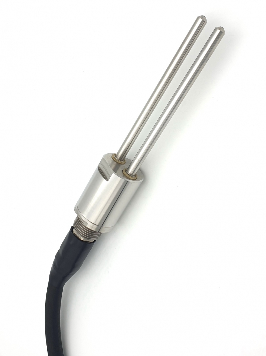 2. Датчик влагомера FIZEPR-SW100.10.4 (FIZEPR-SW100.10.41) выполнен в виде прямого стержня, концы которого через специальные муфты фиксируются на противоположных стенках бункера. Вторым (экранным) электродом указанного датчика служат металлические стенки бункера. Датчик обеспечивает контроль большего объема сыпучего материала (от десятков до сотен литров), благодаря чему неоднородность в распределении влаги по объему бункера не влияет на результаты измерений.