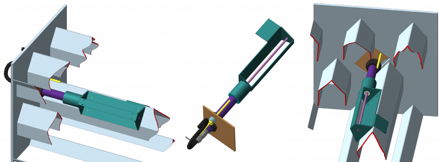 Для зерносушилок шахтного типа разработан датчик FIZEPR-SW100.10.8. Датчик крепится к стенке шахтной зерносушилки, а основание датчика, как показано ниже, упирается в короб воздуховода. Габариты чувствительного элемента датчика (300 х 100 х 60мм) позволяют его вводить между воздуховодами любых сушилок. При таком размещении обеспечивается стабильное заполнение объема датчика зерном.